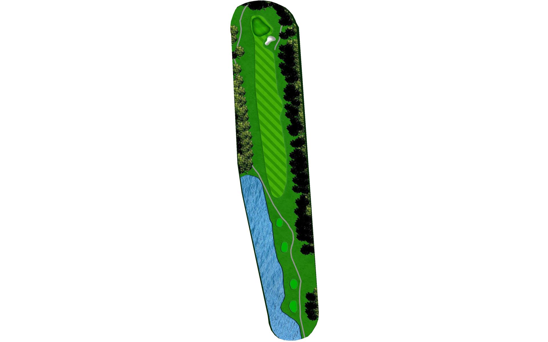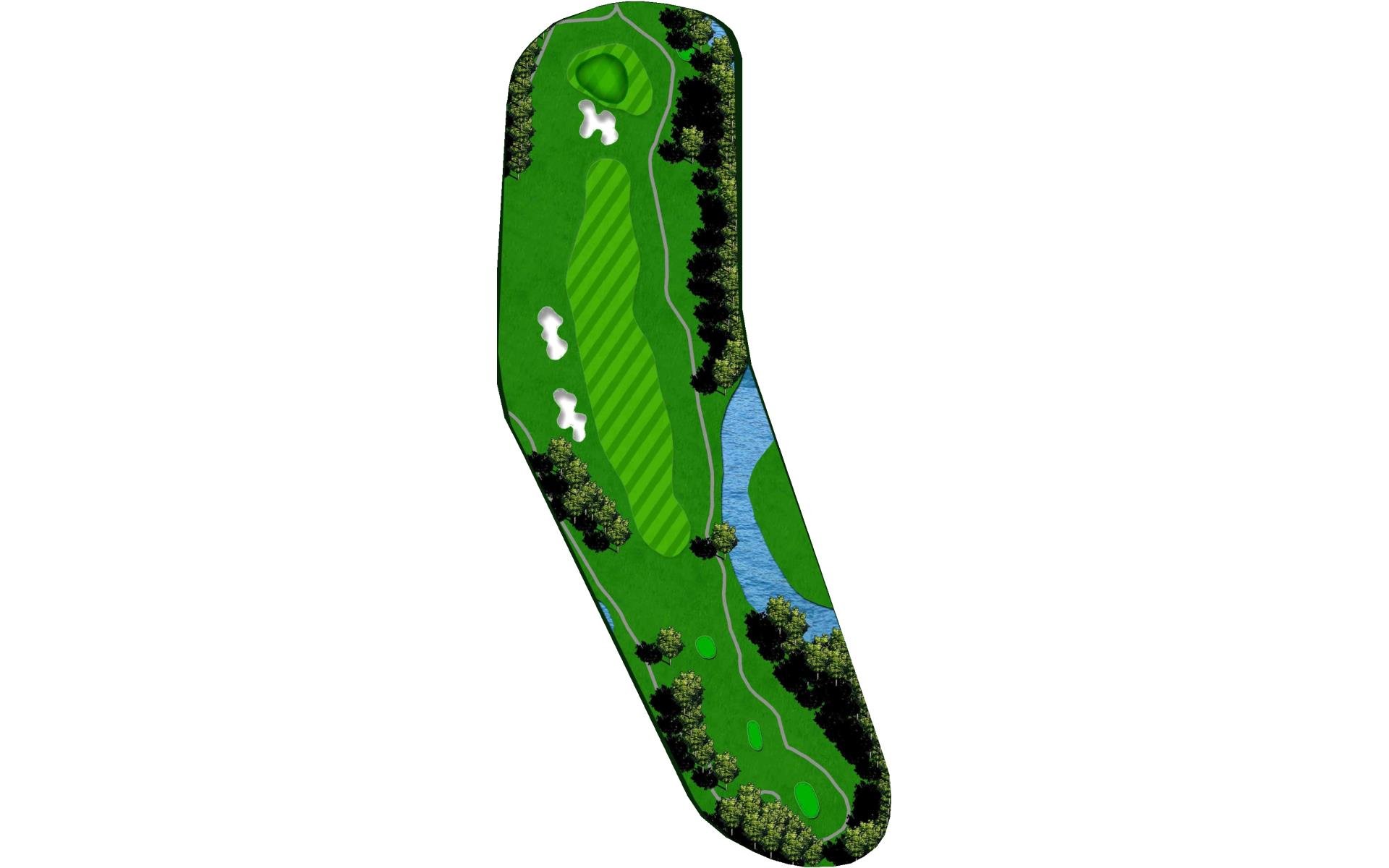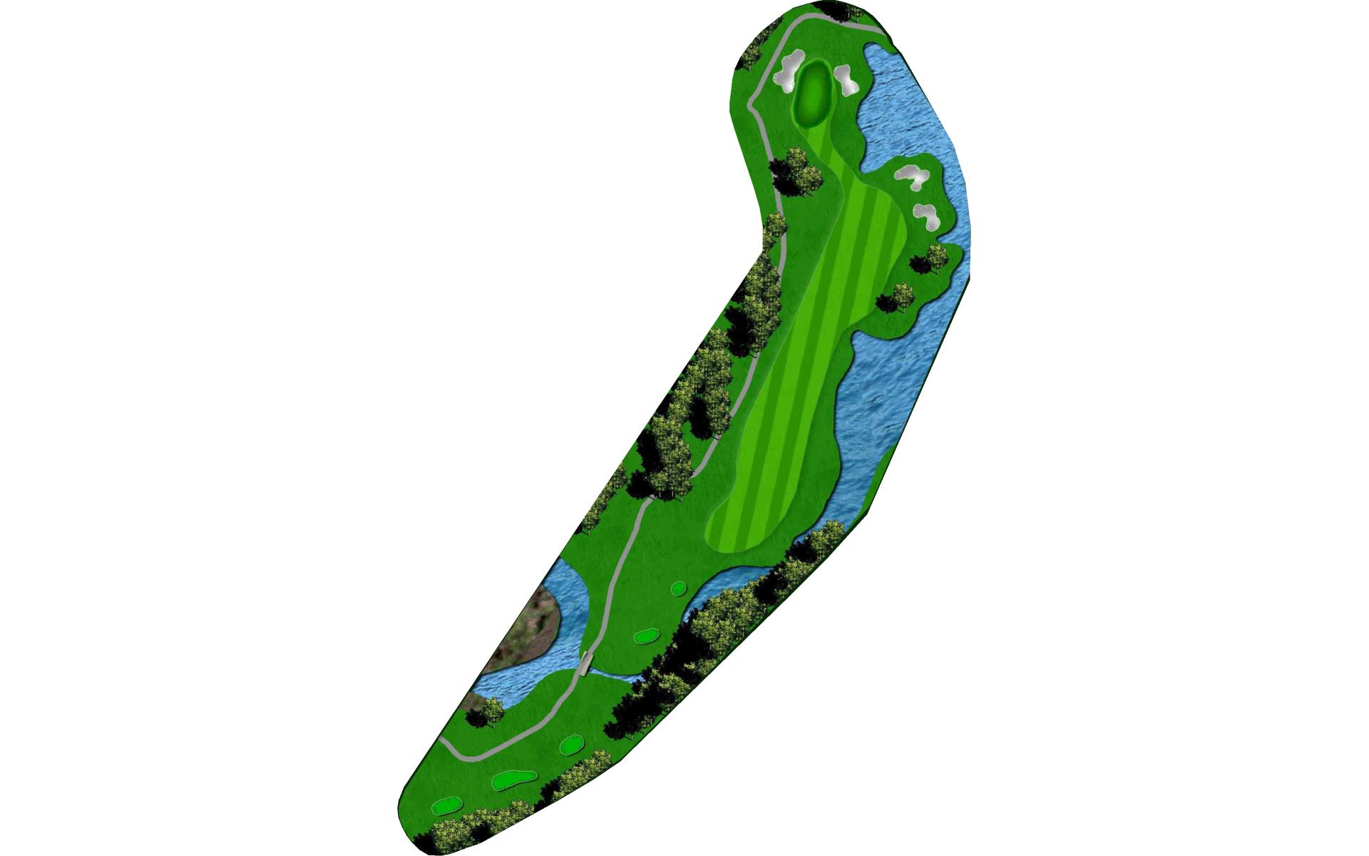 This well guarded green is best played by mid to long iron to the middle of the green. The green has false front and is surrounded by water and penalty area.